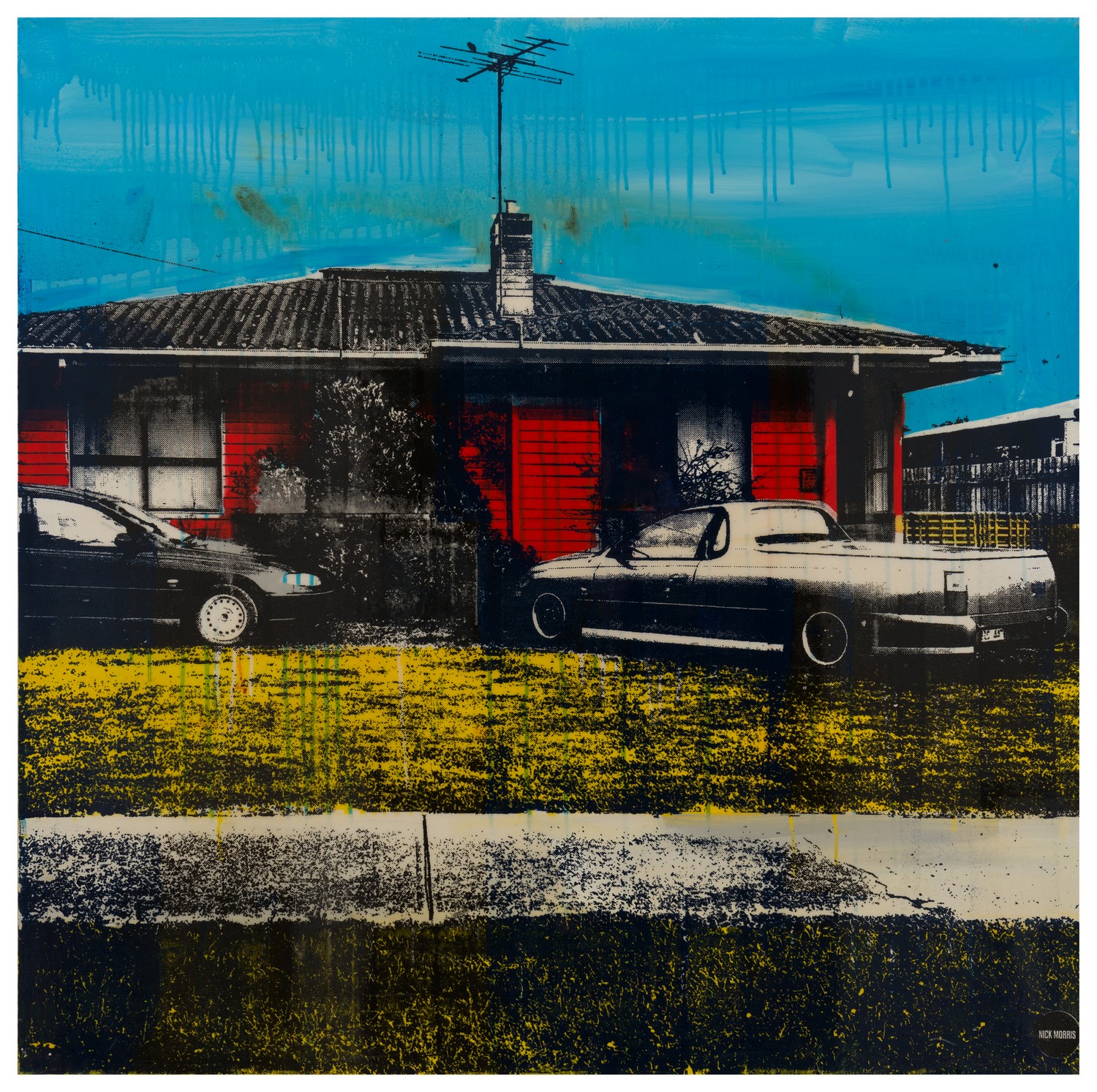 Blemishes in enamel seen upper right corner with small insignificant losses. A brown hazey substance is present drifting across the upper (sky) area- suspected to be the enamel in a deteriorative phase, leaving a burnt/caramelised settlement on the surface.  Canvas, paint and stretcher all structurally sound with no warping detected at all throughout. One light scuff mark present on surface in the lower right corner running horizontally across bottom.