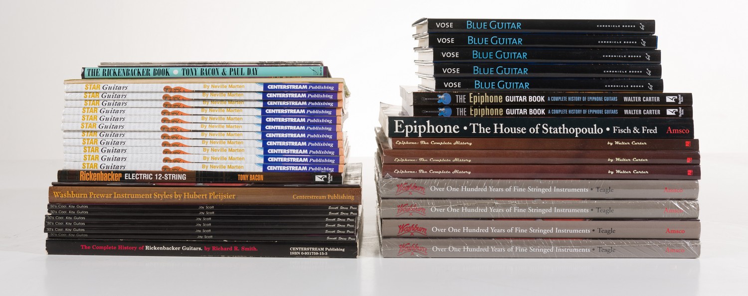 A COLLECTION OF BOOKS ON EPIPHONE, WASHBURN AND RICKENBACKER GUITARS