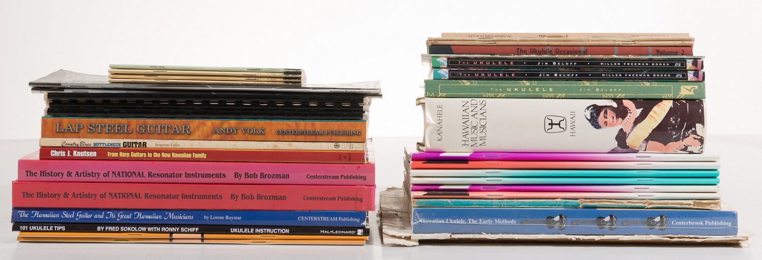 A COLLECTION OF BOOKS ON HAWAIIAN UKULELES AND LAP STEEL GUITARS