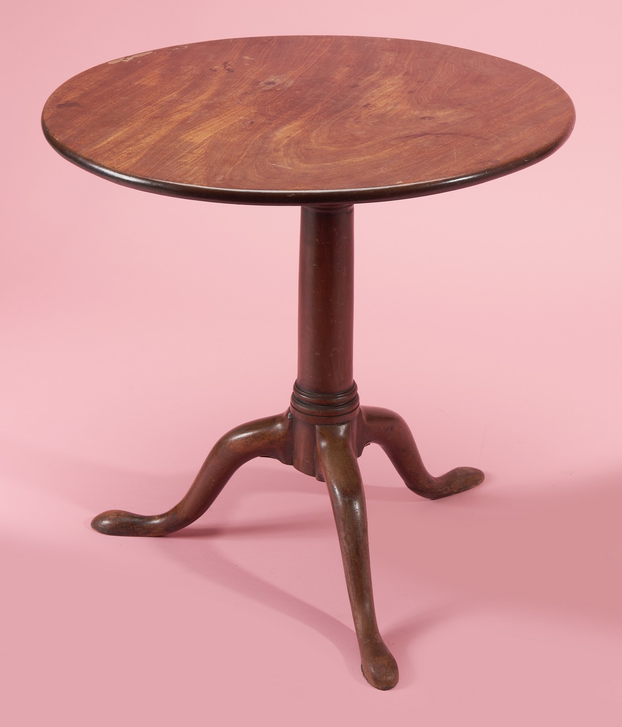 The circular flip top raised on a gunbarrel turned pedestal on a tripod pad feet base