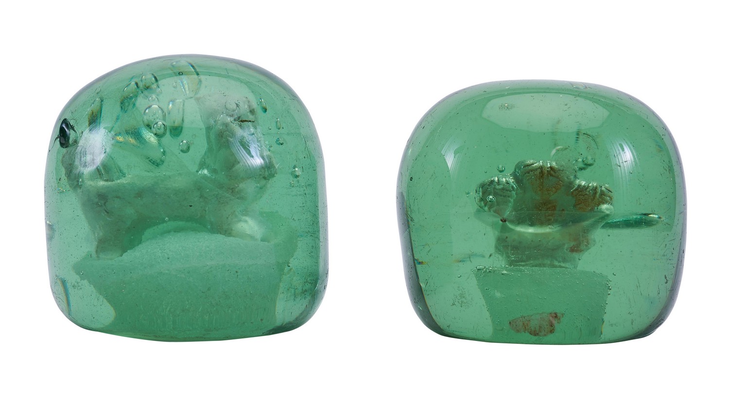 Both with sulphide inclusions, the first depicting a lion the second the Prince of Wales plumes.
