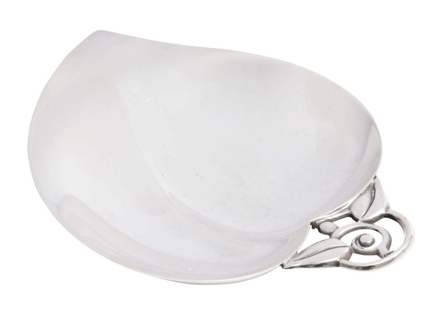 The shallow dish with a pierced handle. Marked 'Tiffany & Co/ Makers/ Sterling/ 88885/ M.