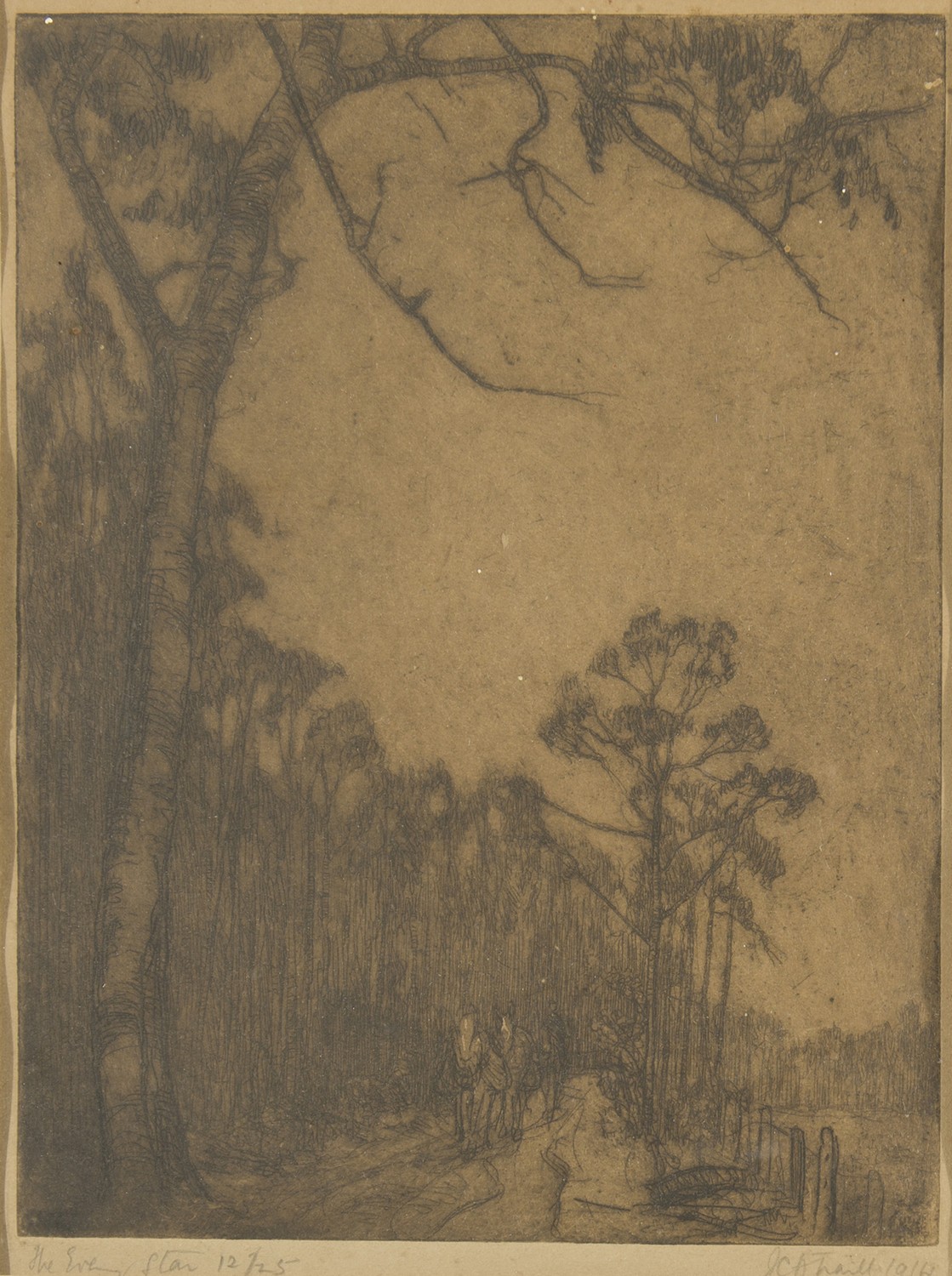 With a discerning eye for line, form and tone, Traill's etchings are recognised widely for addressing the transformation of the landscape during a time where industrialisation was taking a hold. Her works pay homage to the innocence of nature and the simplistic beauty of elements such as moonlight, silhouettes, late evening forms and glistening stars.