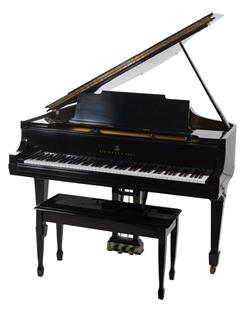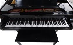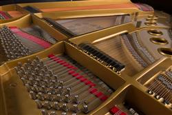 Not recently tuned or serviced, exterior condition is consistent with age, surface scratches, dents and scuff marks throughout. Possible restoration to hammers and strings.