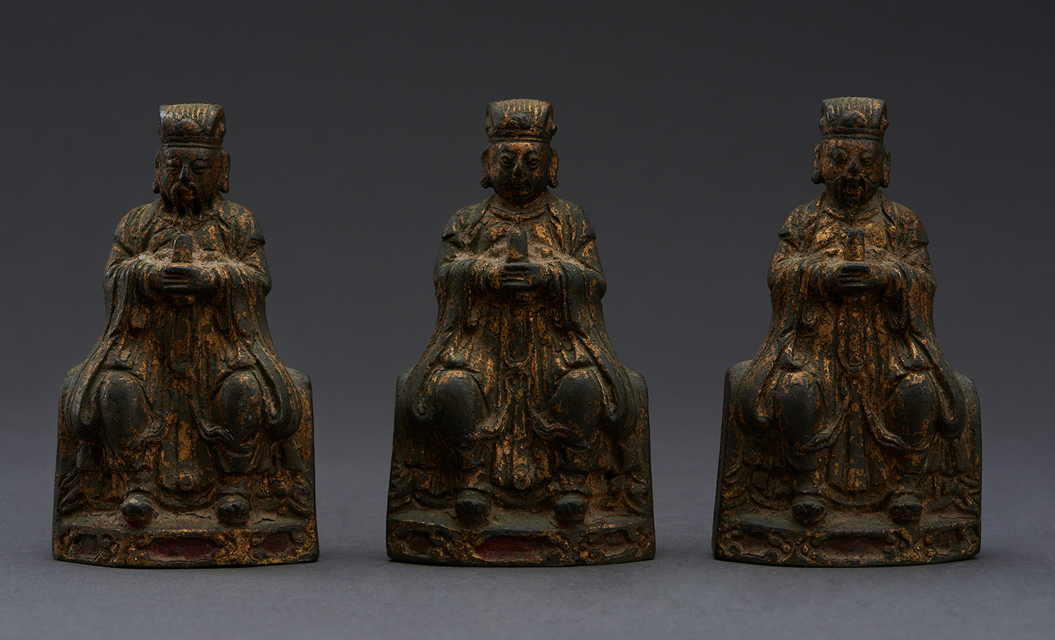 THREE CHINESE GILT BRONZE FIGURES OF GODS