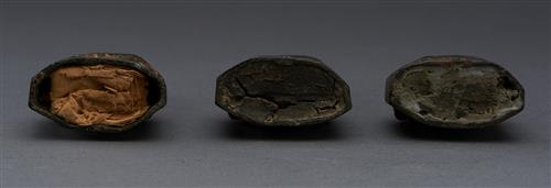 Old wear, loss to gilding and pigments. One with the bottom seal broken and paper showing.