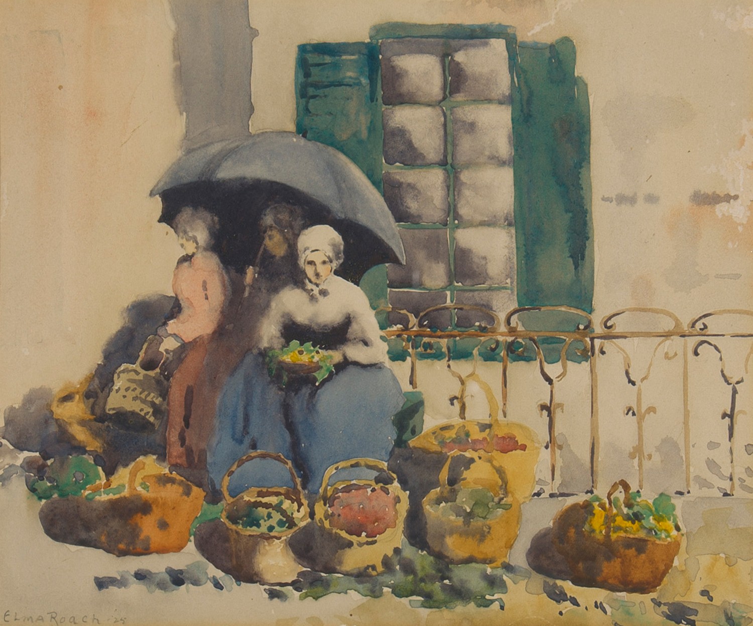 After attending the National Gallery School, with private lessons from M. J. McNally, Elma Roach departed for London and Paris. Years abroad caused Elma's oeuvre to become more modern. In fact, in a 1939 issue of Art and Australia, Basil Burdett noted that Elma had brought back an aspect of European painting unfamiliar to the Australian eye.