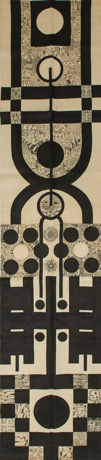 Wall hanging is in very good condition. Yellowing and discolouration is evident throughout the material. No tears, holes or repairs are seen on work, material is completely stable. Imperfections are seen and darker dots (resemble foxing) are seen in random areas.