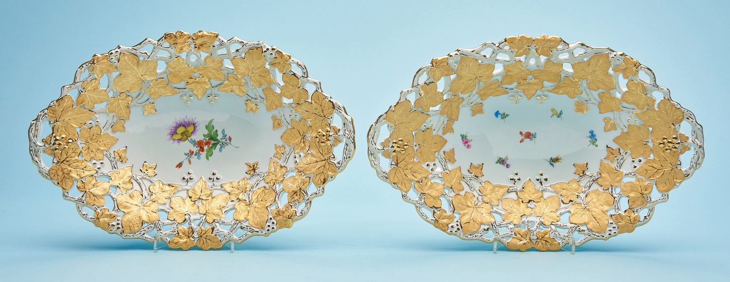 A PAIR OF ELABORATE MEISSEN PORCELAIN DISHES