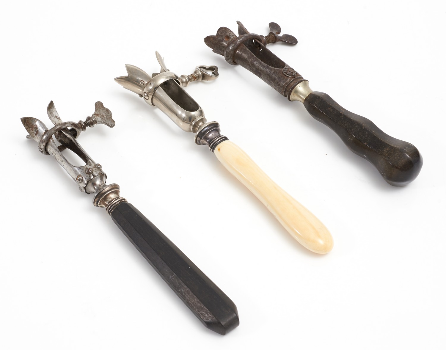 Of typical form, two with wooden handles and the other in ivory.