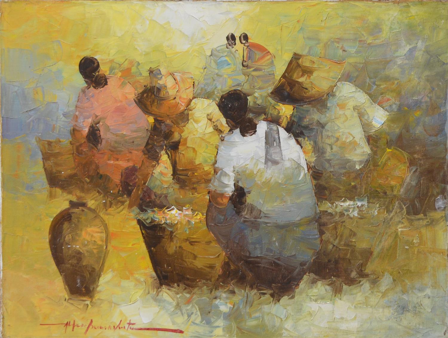 ALFREDO BUENAVENTURA, PAIR OF WORKS, VILLAGE SCENES, OIL ON BOARD, 46 X 61CM (EACH)
