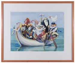 Work is in very good condition with no faults to report. Paper has slid from the mount resulting the work to sink down. Well framed.