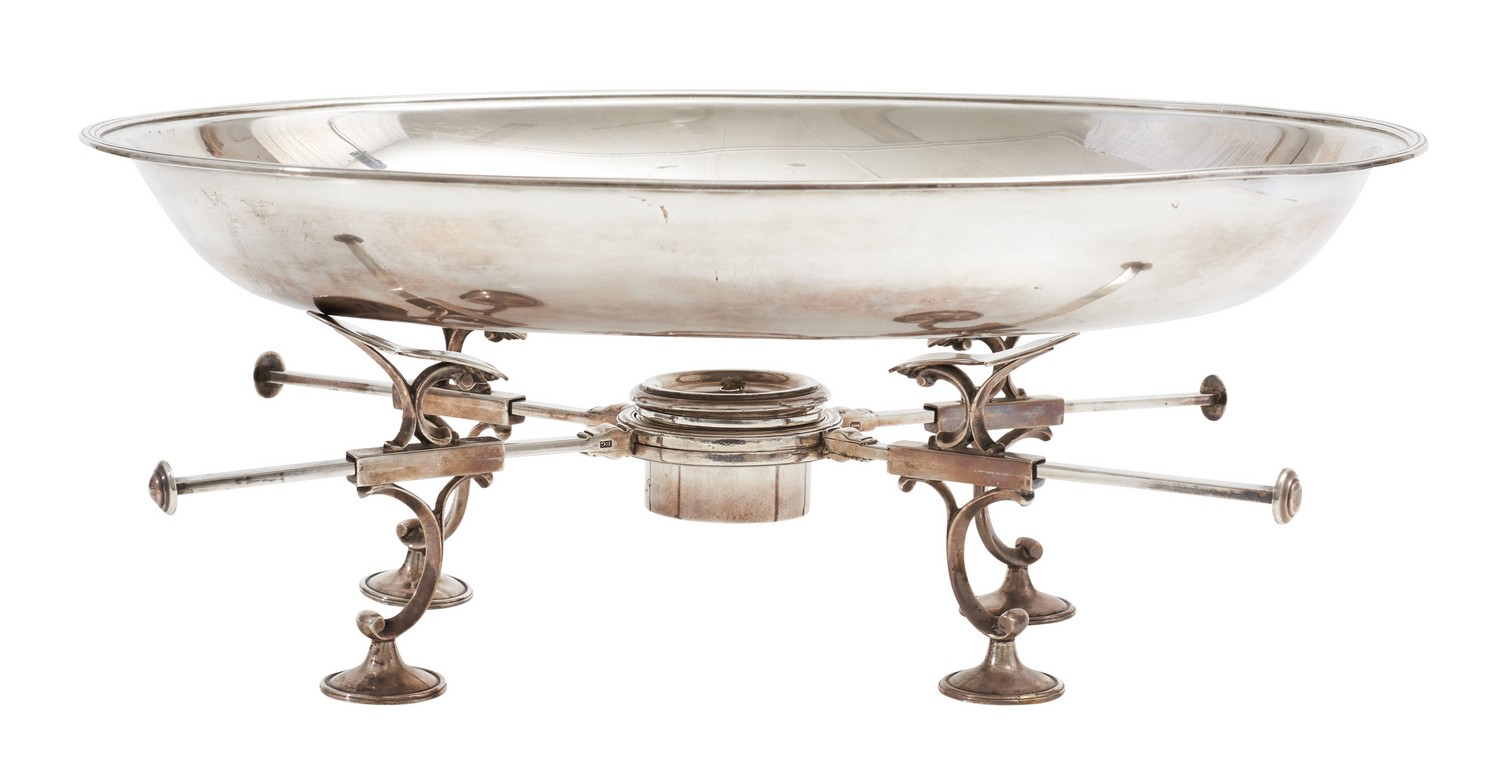 The warming stand with adjustable supports, hallmarked circa 1804.
