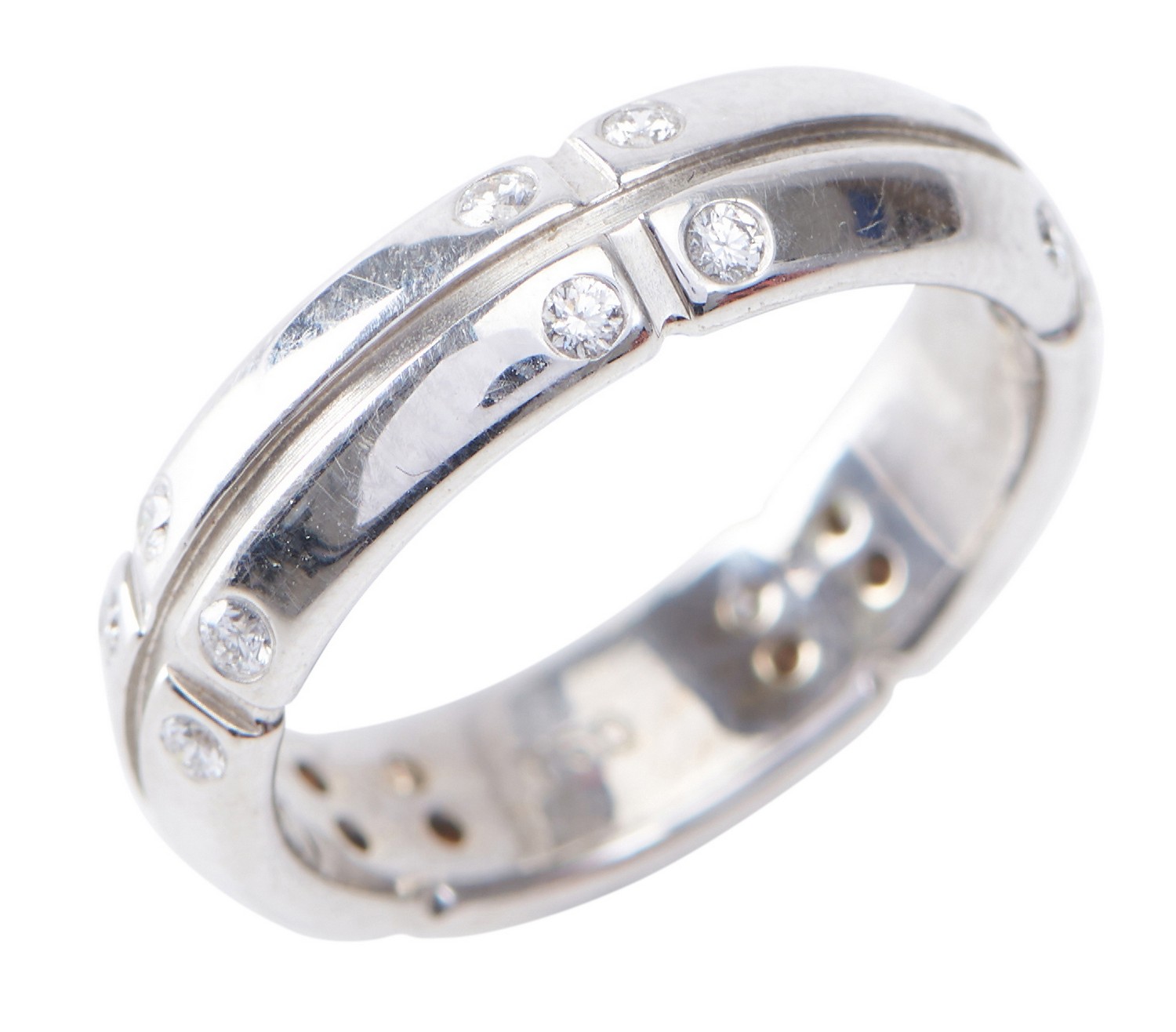 From the 'Streamerica' range, of sectional design, detailed with round brilliant cut diamonds, in 18ct white gold, ring size I.