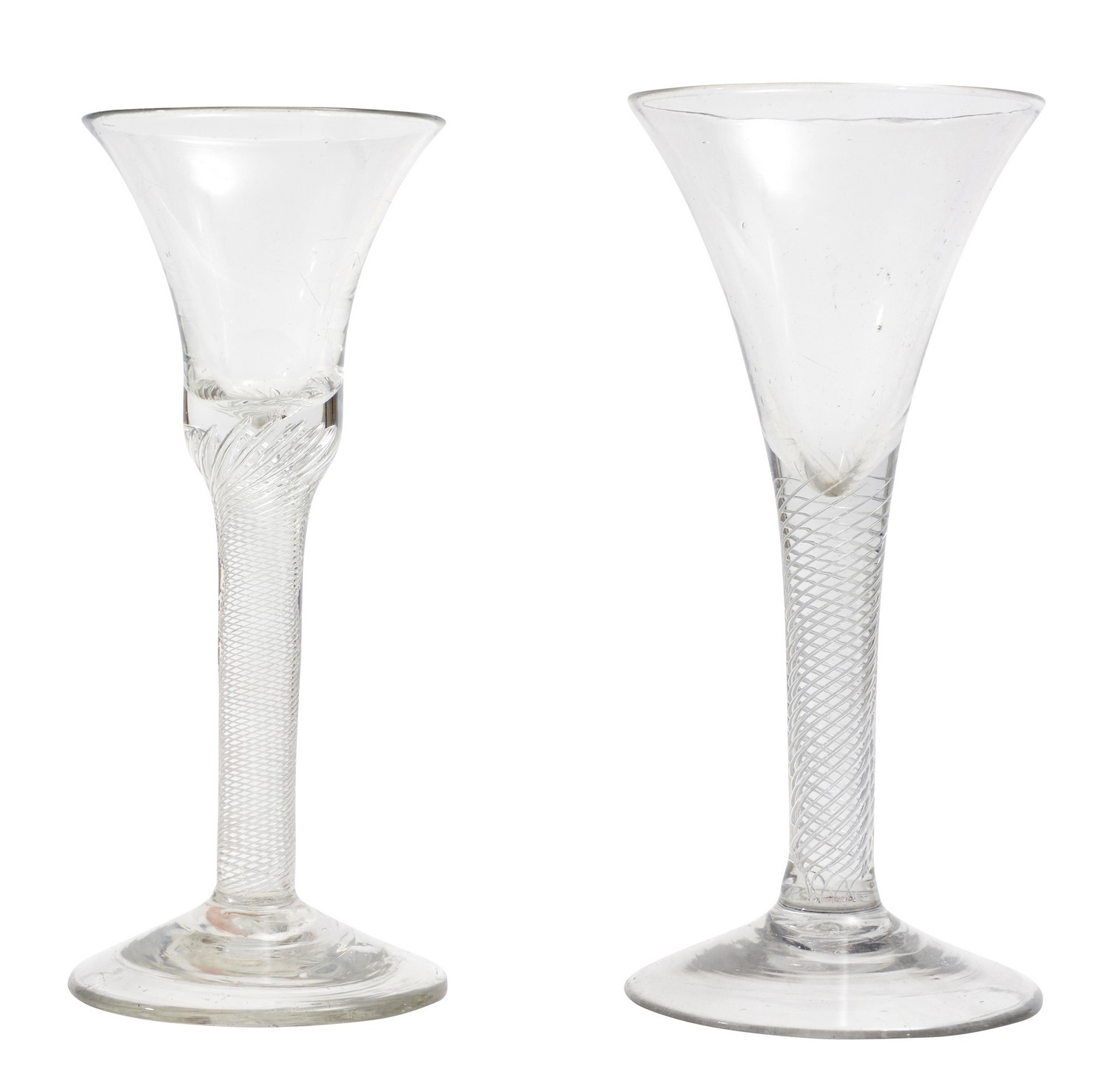 Each with a trumpet bowl, raised on an incised stem above a circular foot.