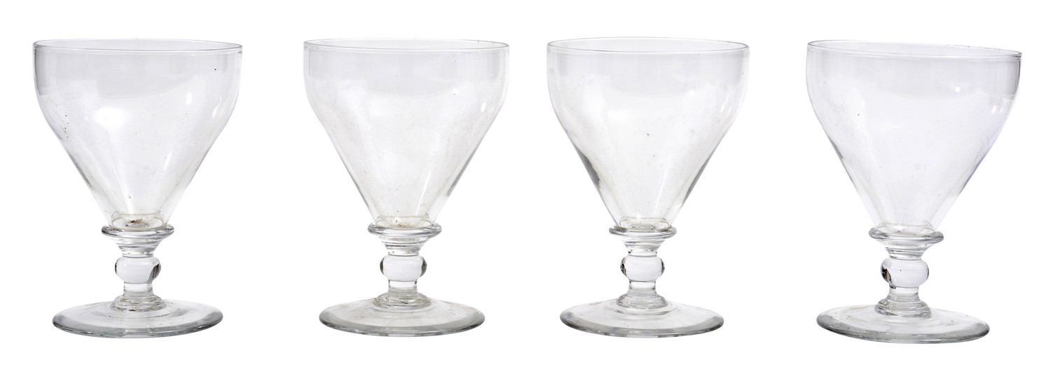 Each with a single knopped stem and raised on a circular foot.