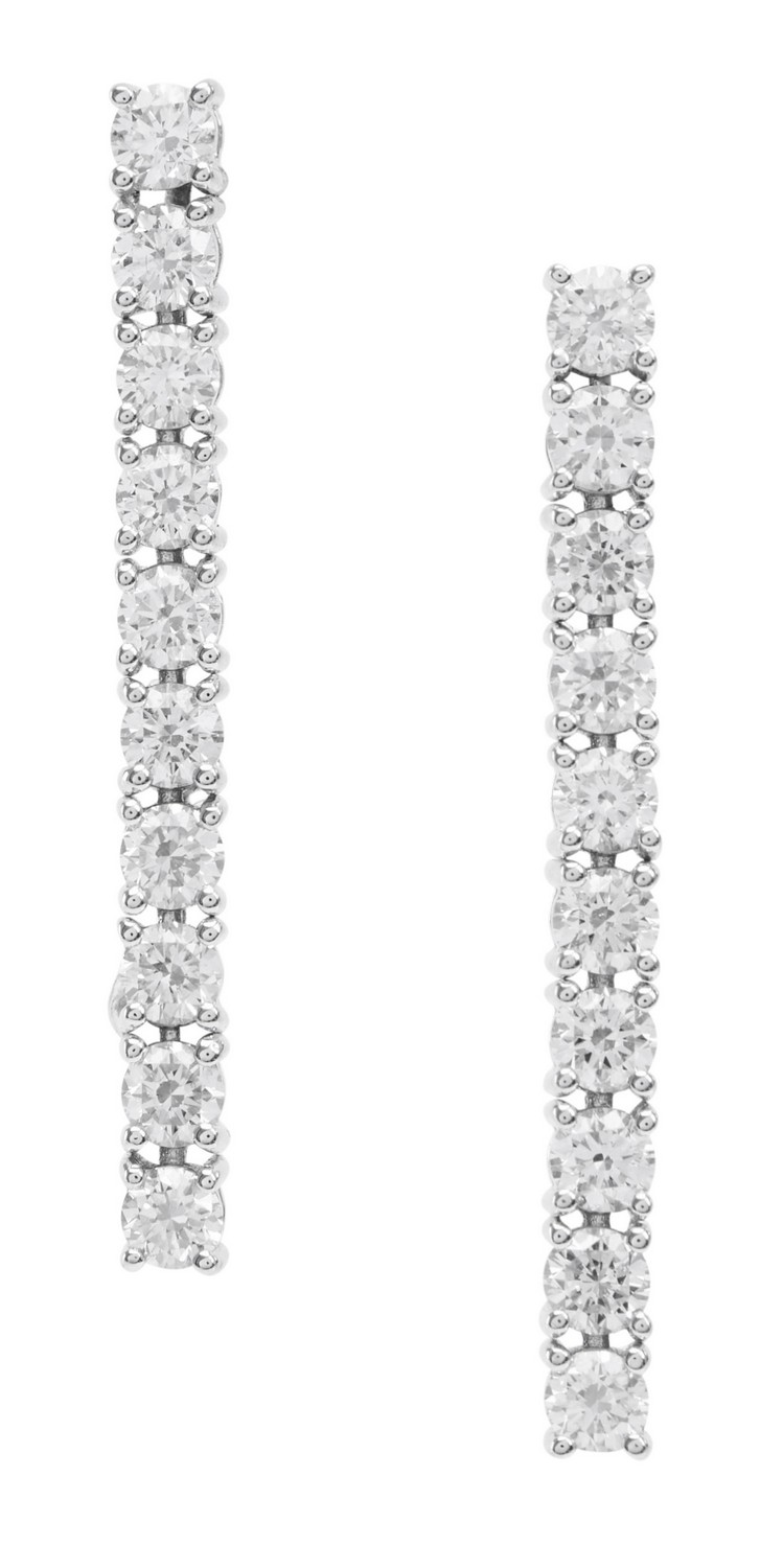 Each earring featuring a line of ten round brilliant cut diamonds totalling 0.81cts, in 18ct white gold.