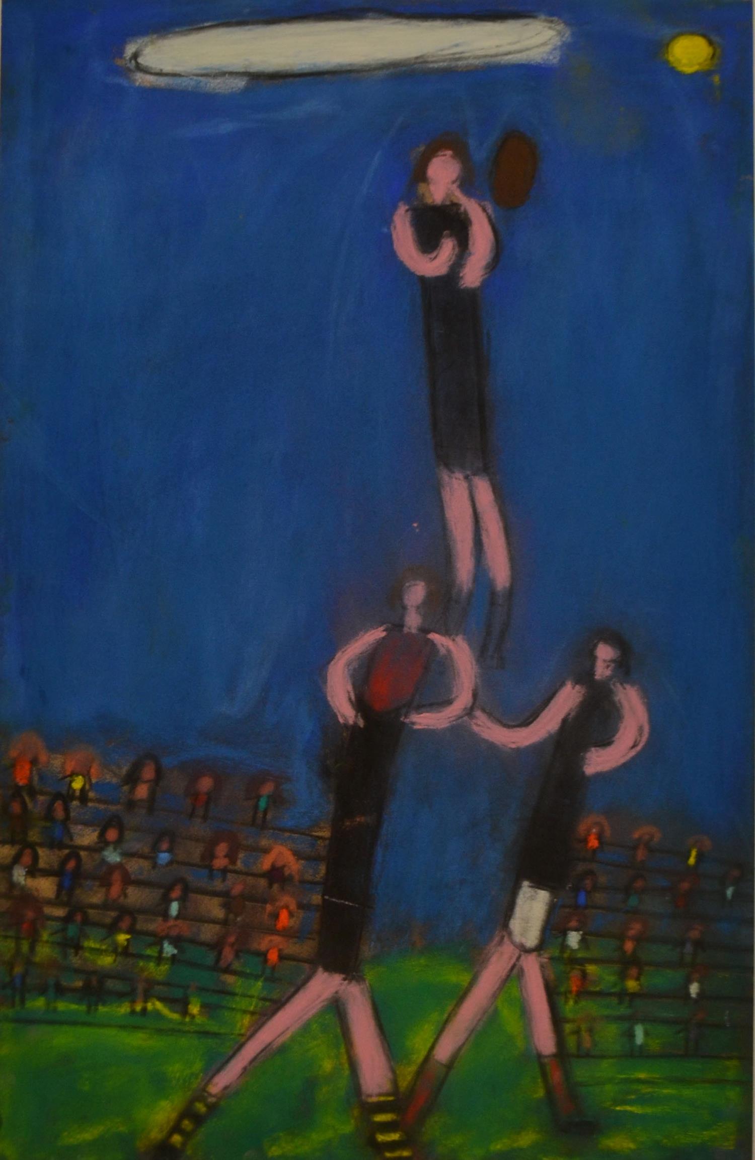ANNE LYNCH, FOOTBALL PLAYERS 1995 (PAIR OF WORKS), PASTEL ON PAPER, 49 X 33CM, UNFRAMED, CONDITION: SMUDGING OF PASTEL TO MOUNTS