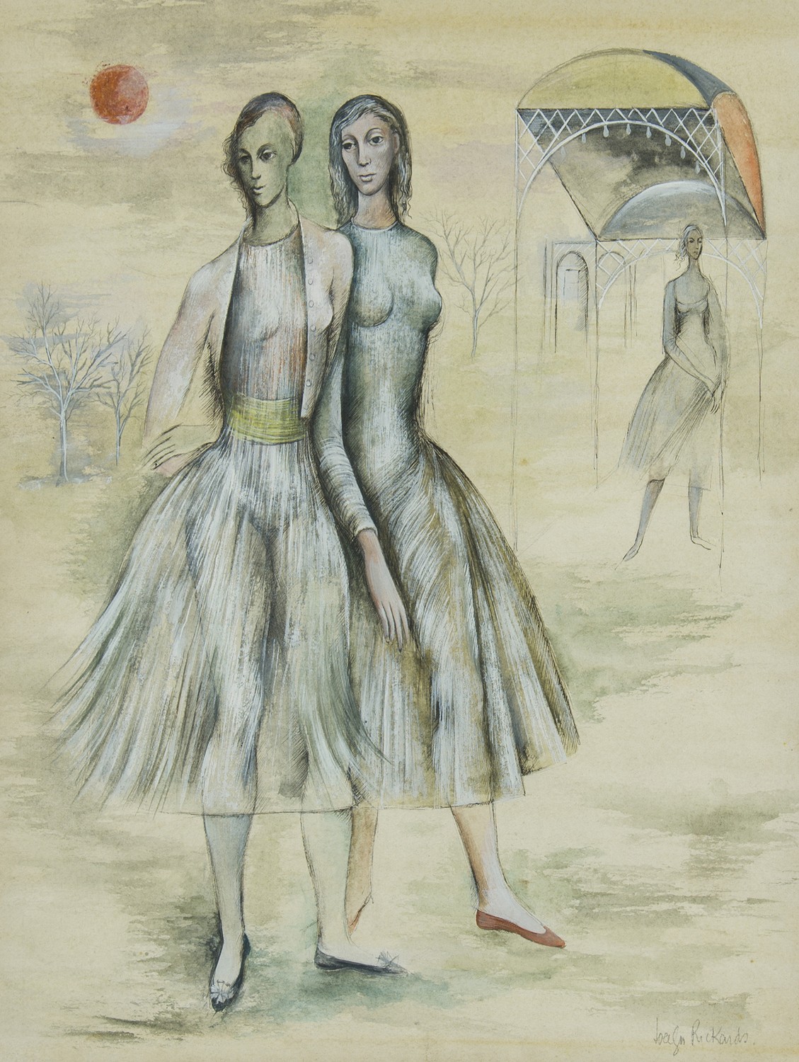 "Jocelyn Rickards was an extraordinary woman. Coming from a conservative family, she talked her way out of Ascham and into the Darlinghurst Art School ('East Sydney Tech') at the age of 14. She stayed on for an extra year to hone her skills and became part of an infamous & vital salon called The Merioola Group (named after the house they all shared in Woollahra). She was a leading light in what Robert Hughes referred to as 'The Sydney Charm School' of artists who exhibited at the David Jones and Macquarie Galleries in the late 1940s.
