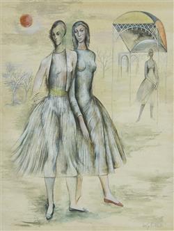 GUELDA PYKE (1905-1994) Nomads c.1960s oil and mixed media on board