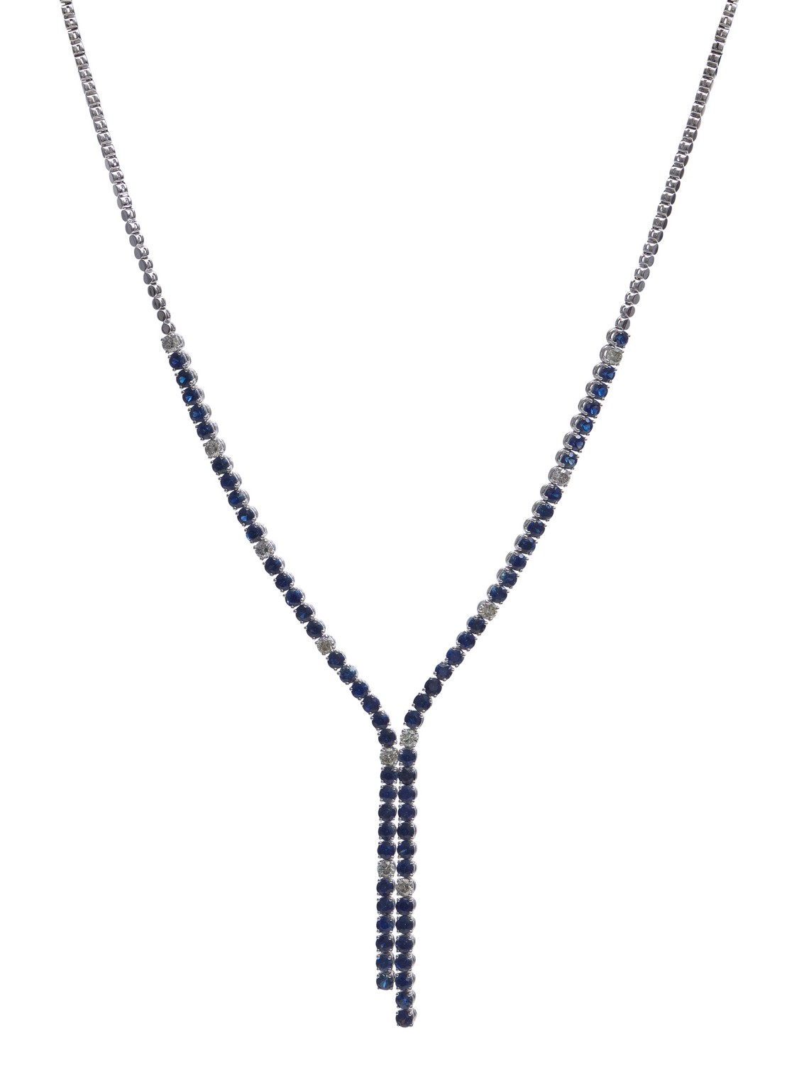 Comprising sixty seven round brilliant cut blue sapphires totalling 13.29cts, spaced with eleven round brilliant cut diamonds totalling 1.81cts, in 18ct white gold.