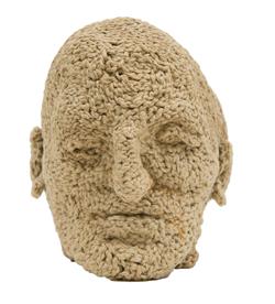 "Ewa Pachucka has always been fascinated by the apparent serenity and harmony that existed in primitive cultures before civilisation alienated man from man, and man from his environment. Each crochet stitch in her work is like a cell organically growing into a harmonious whole, whether it is an anatomical detail within a figure or a figure within a landscape."