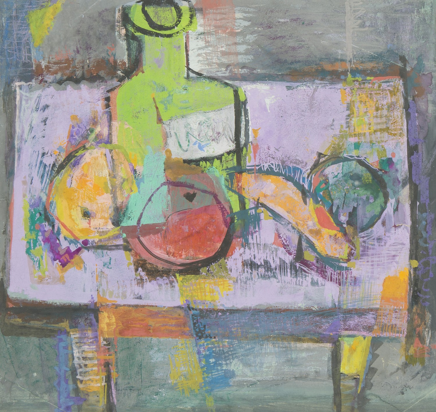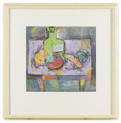 Brash has made her mark on Abstractionism and Cubism within the realms of the Australian art scene. This artwork eagerly captures her complex understanding of the still subject, while using bursts of colour to realise movement and fragility. The fruit almost appears to be rolling off the table.
