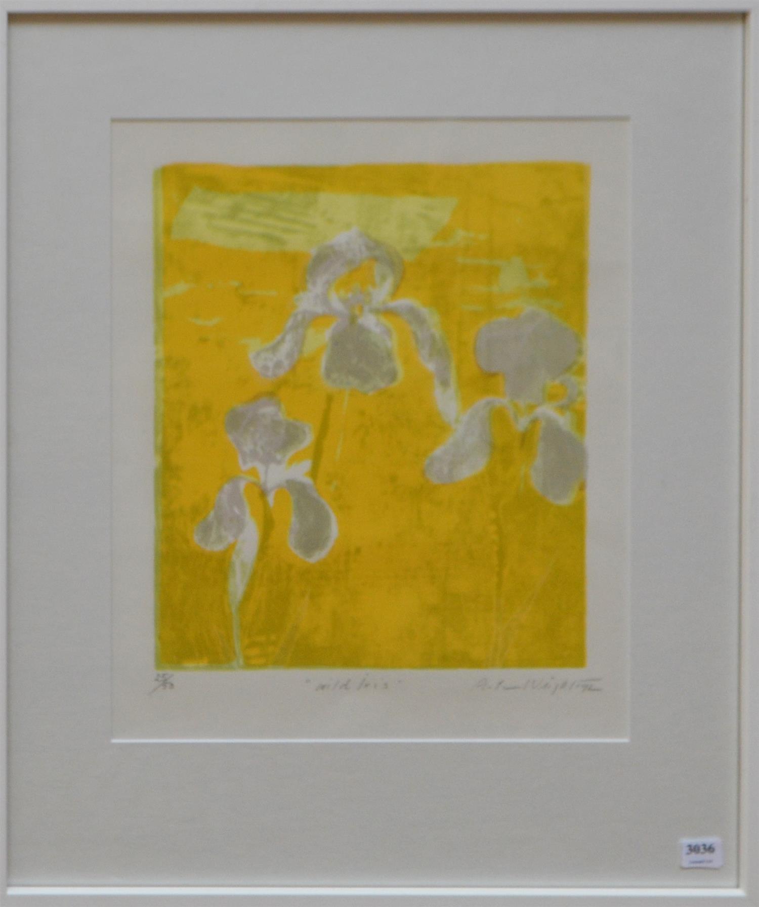 SIGNED LOWER RIGHT, WILD IRIS, SCREENPRINT 25/50, 32 X 28CM