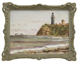 No losses visible or concerns to note. A light layer of dust has settled on suface and a crease is visble in the lower left hand corner in the canvas. Work is well framed.