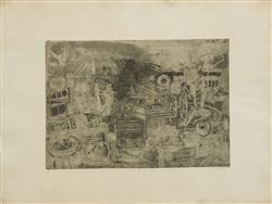 This work is unframed, with moderation discolouration to the paper, and wear to the edges and corners. Staining is also visible verso, but not through to the facade.