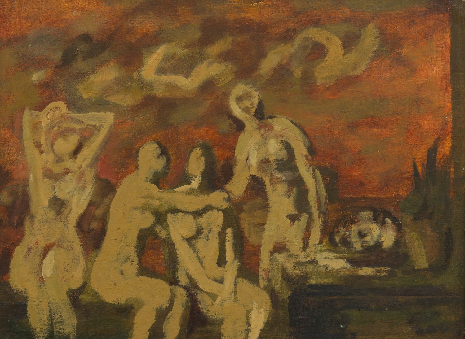 GUELDA PYKE (1905-1994) Nomads c.1960s oil and mixed media on board