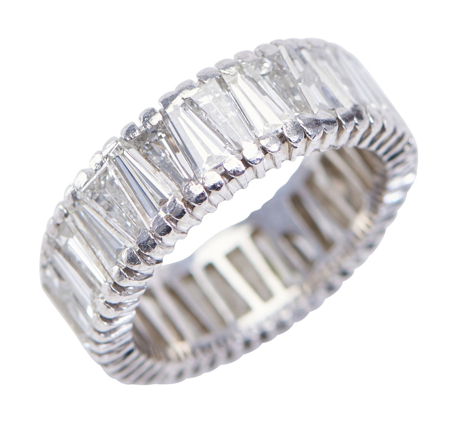 The ring presents well, however with a number of the diamonds having minor chips. Gold surfaces show some evidence of wear. Estimated G-H in colour and VS-P1 (due to chipping)