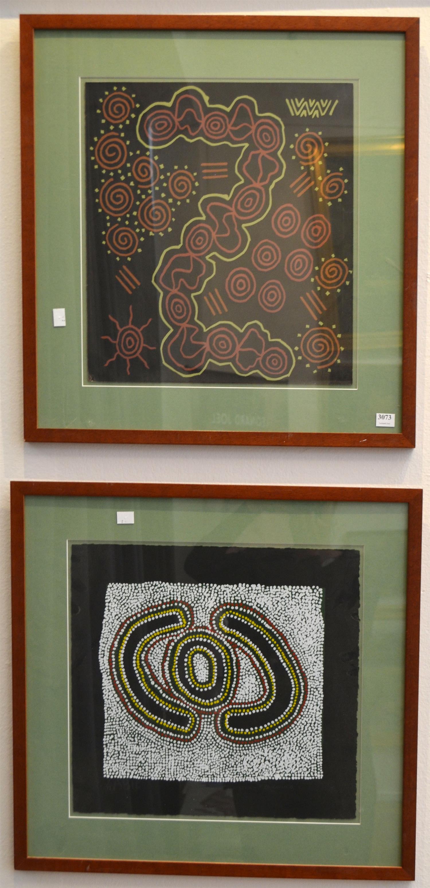 TWO WORKS BY MARRNYULA MANUNGGURR AND ABIE, UNTITLED, SCREENPRINTS, SIZES VARY, CONDITION: VERY GOOD
