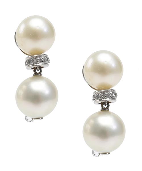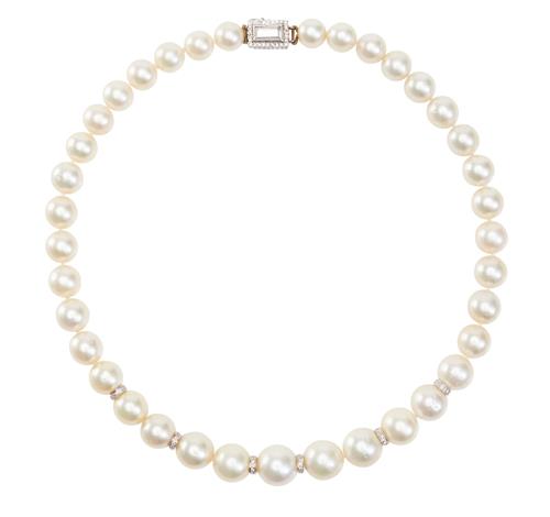 A SOUTH SEA PEARL AND DIAMOND NECKLACE AND EARRING SUITE