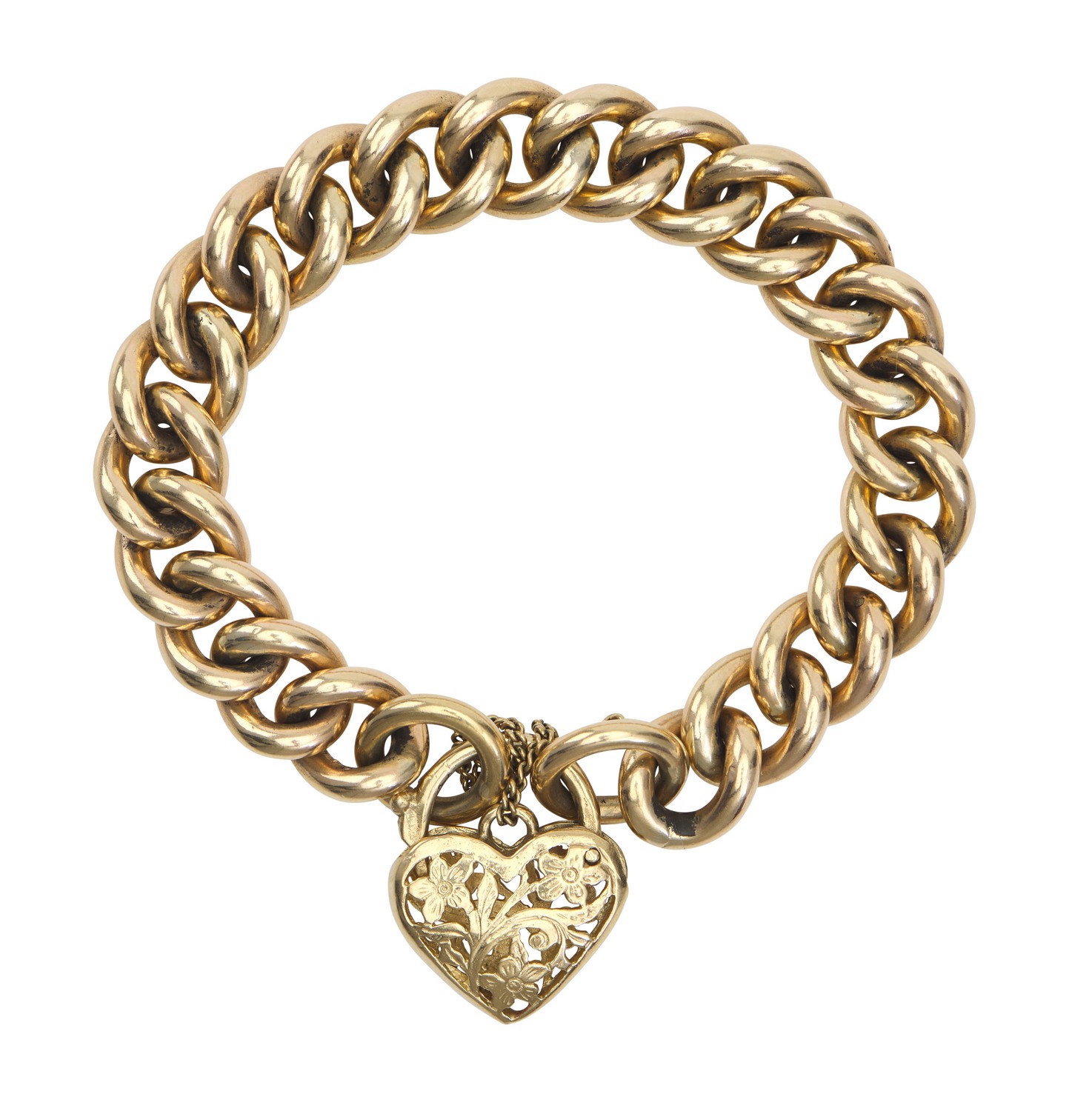The curb link bracelet with pierced padlock clasp with floral motifs, in 9ct gold, total length 190mm.