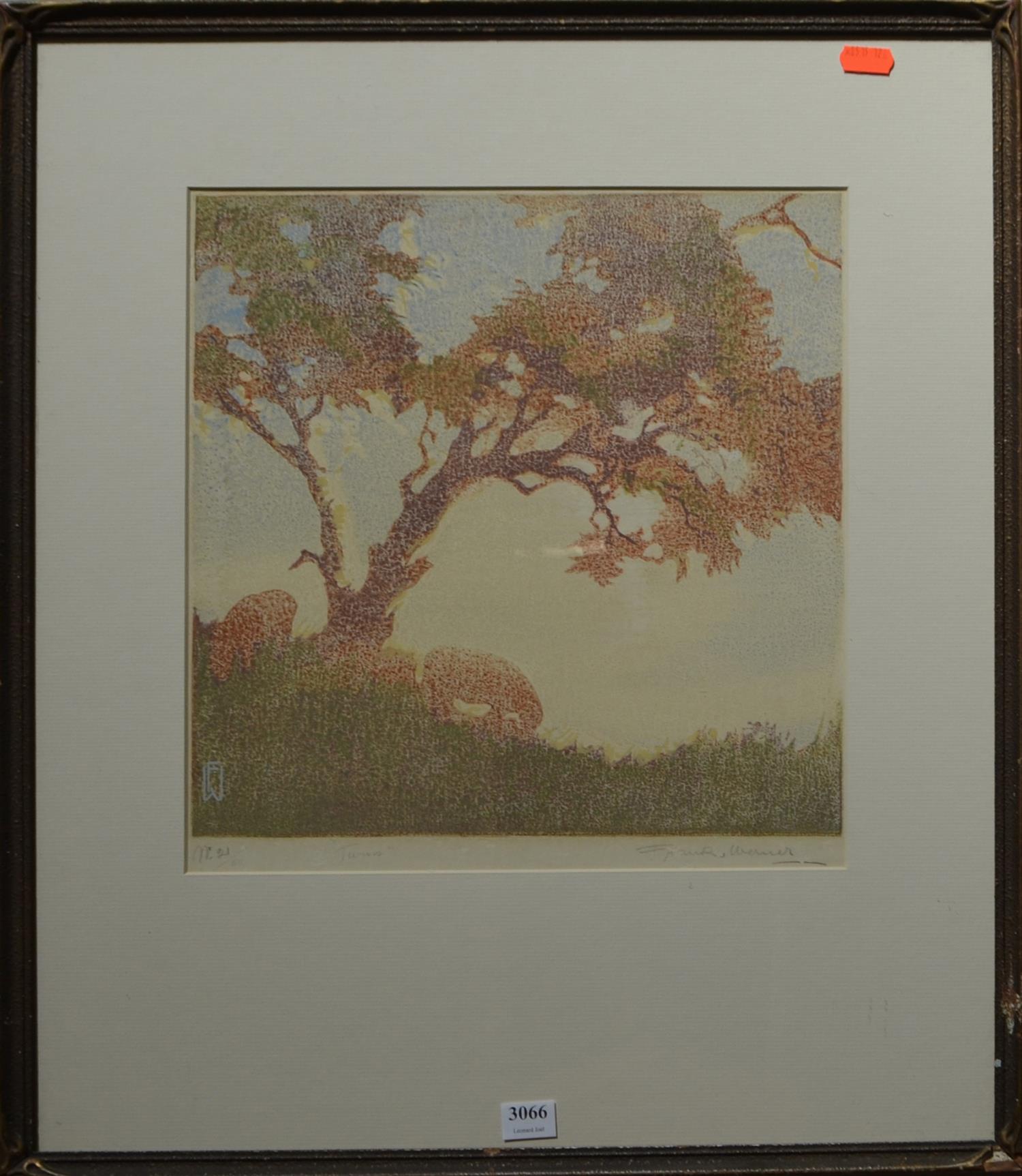 FRANK WERNER, TWINS, LITHOGRAPH 21/60, IMAGE SIZE: 30 X 30CM, CONDITION: MINOR DISCOLOURATION TO THE PAPER, ABBRASIONS TO THE PAPER SEEN AT BASE, FRAME SIZE: 55.5 X 48CM