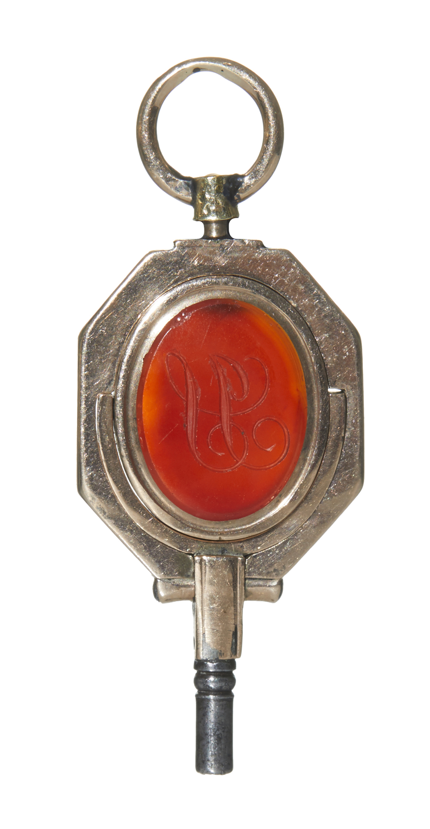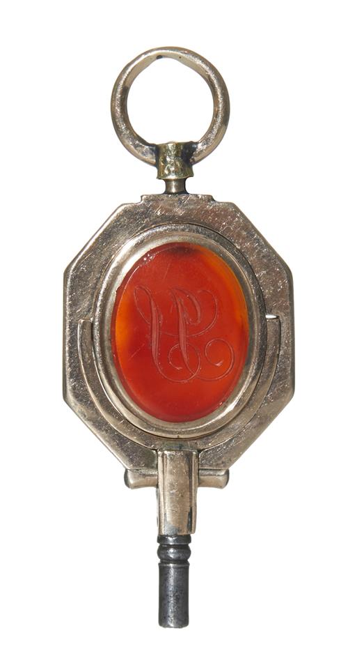 AN OVALSWIVEL GOLD AND CARNELIAN WATCH KEY FOB