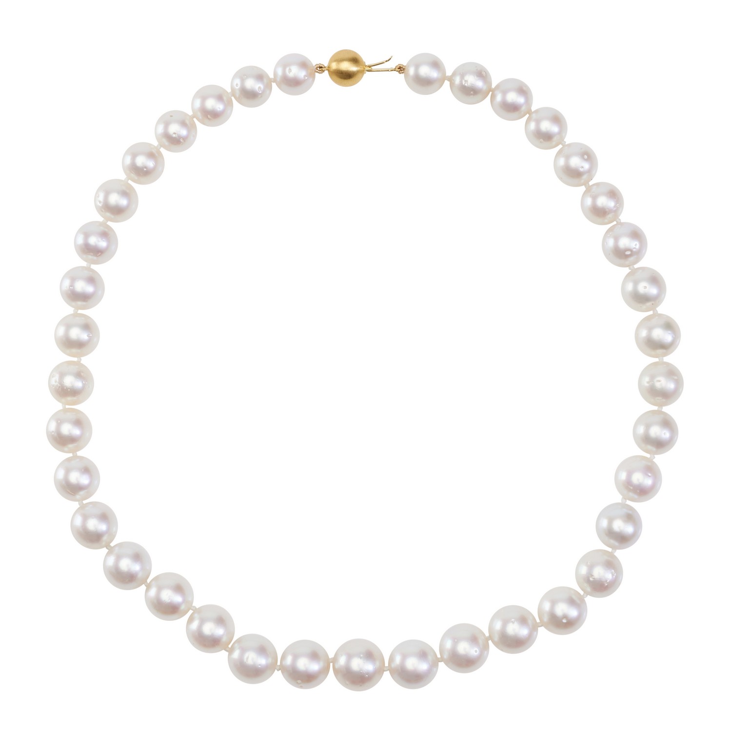 Comprising thirty seven round pearls of silver white hues, measuring 11.0mm to 13.5mm, to a ball clasp in 9ct gold, total length 485mm.