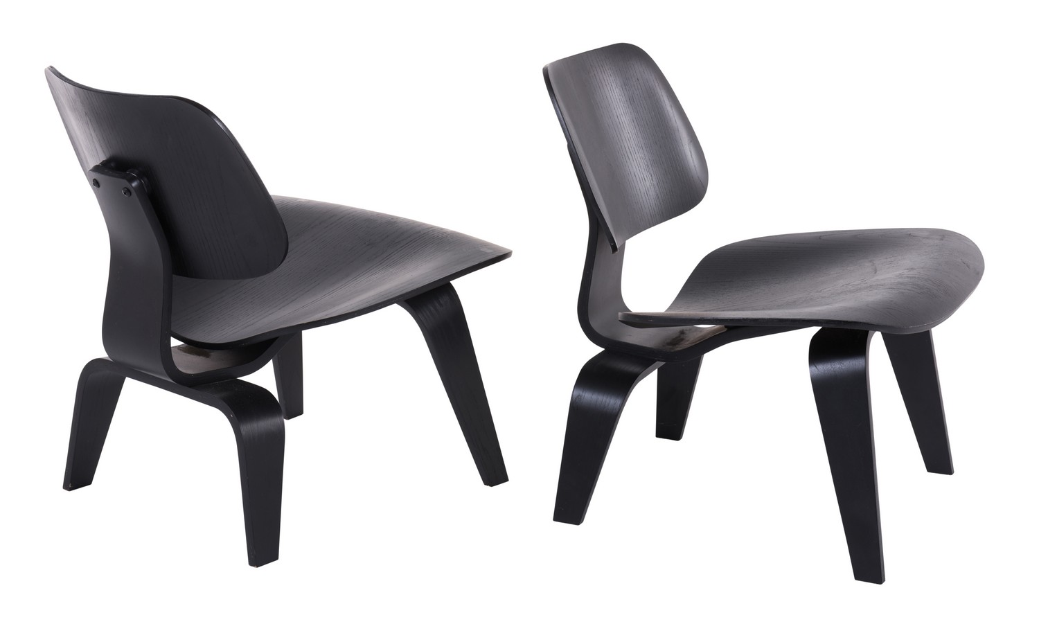 Both chairs have surface scratches, some of which have been touched up with black paint. Both chairs structurally sound and stamped to base. Overall good condition.