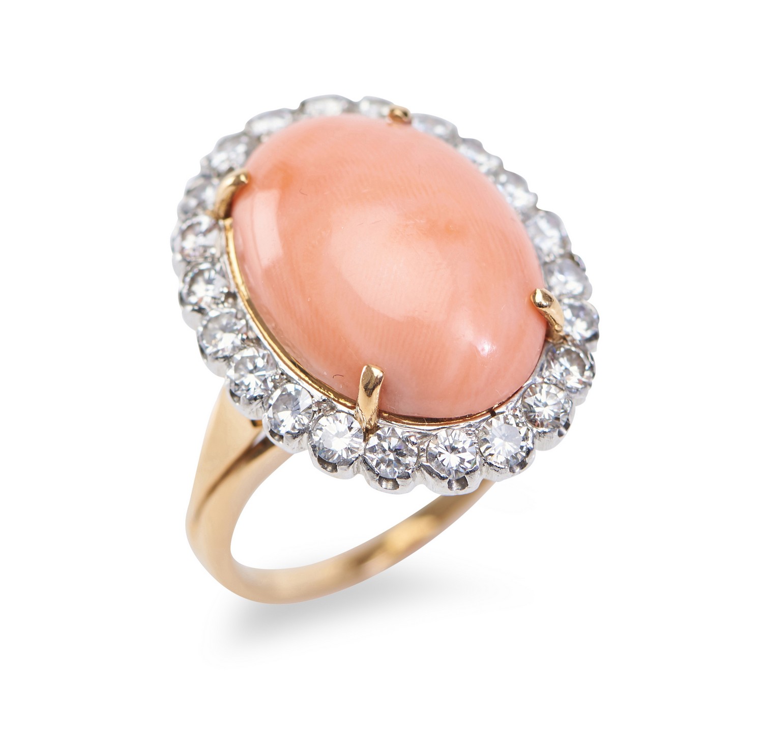 The ring presents in very good condition overall with the coral in good order and all diamonds secure.
