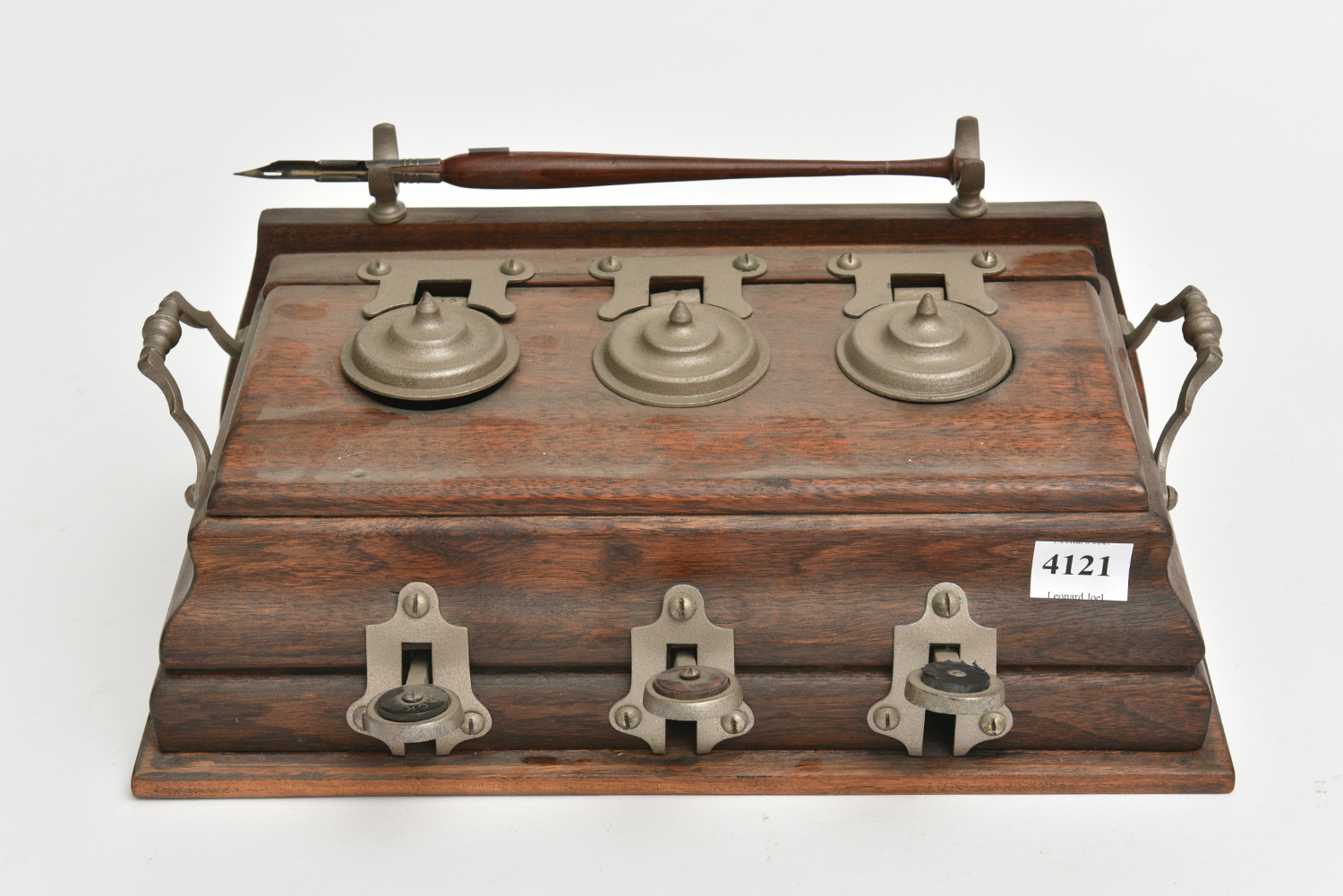 A DESK TOP SET OF THREE INK WELLS, LEONARD JOEL LOCAL DELIVERY SIZE: SMALL