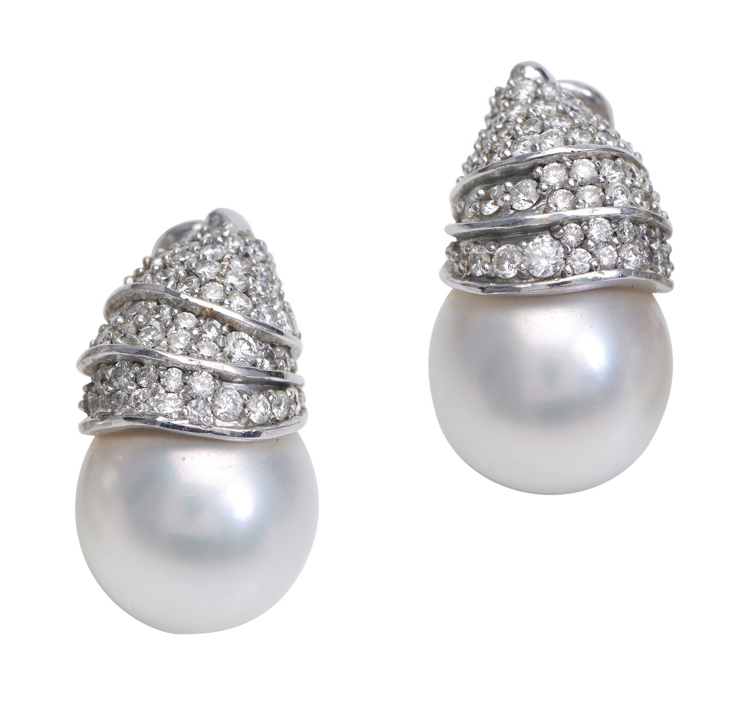 The earrings present in very good condition overall with minor evidence of wear. The pearls are in good order and diamonds are of a good commercial quality. Total diamond weight for both earrings is 2.31cts.