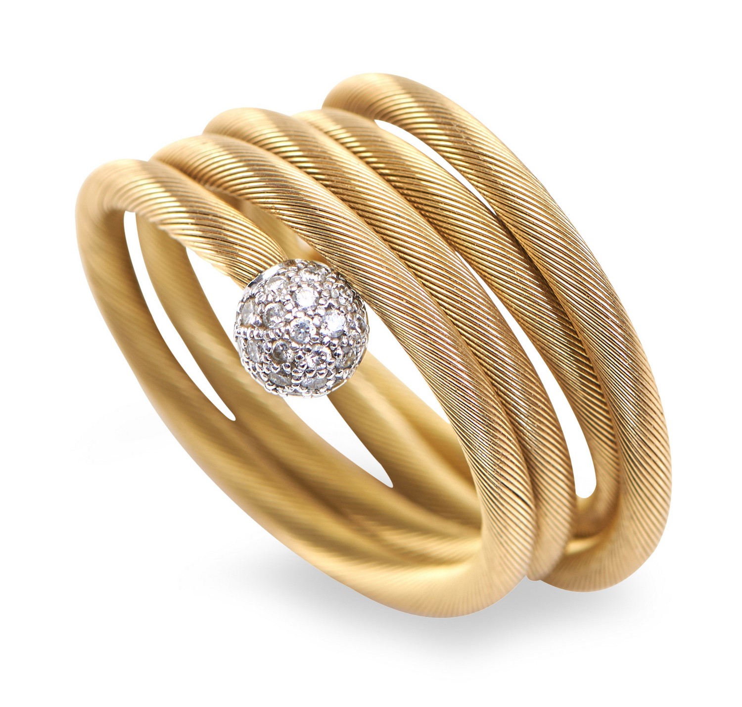 The flexible spiral design with diamond set terminal, in 18ct gold, ring size O-P.