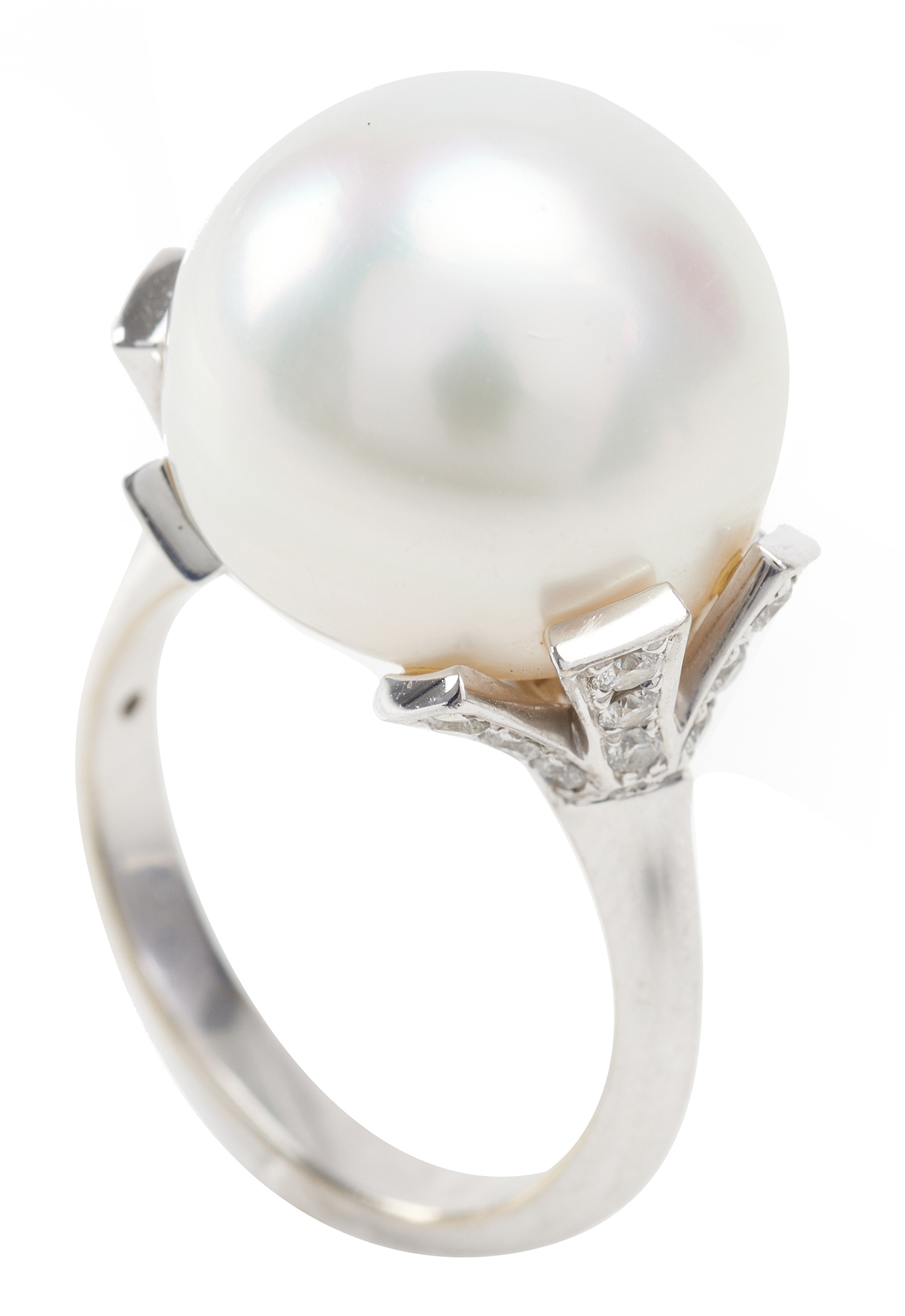 The ring presents in very good condition overall. The pearl and diamonds are all secure in their settings.