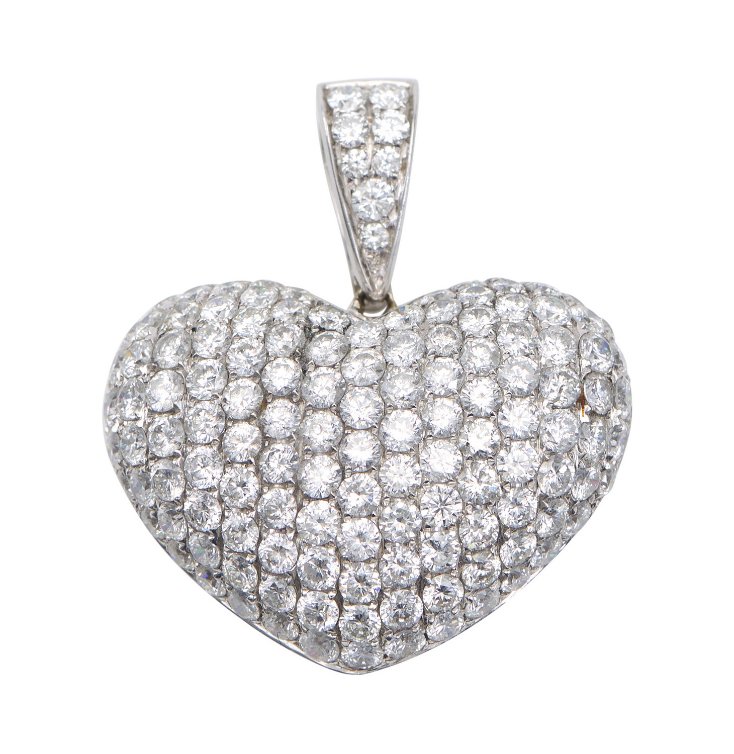 The domed heart and bale pavé set with round brilliant cut diamonds totalling 5.11cts, in 18ct white gold.