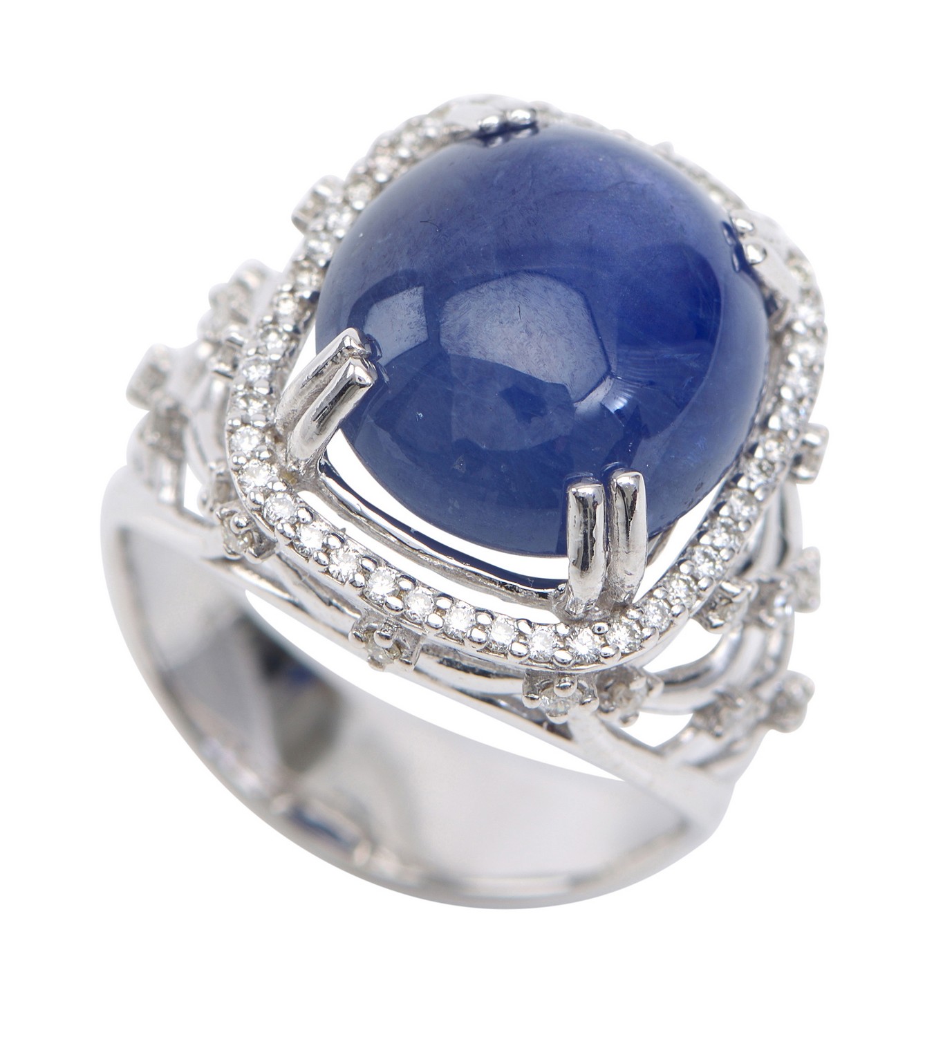 A SAPPHIRE AND DIAMOND CLUSTER RING