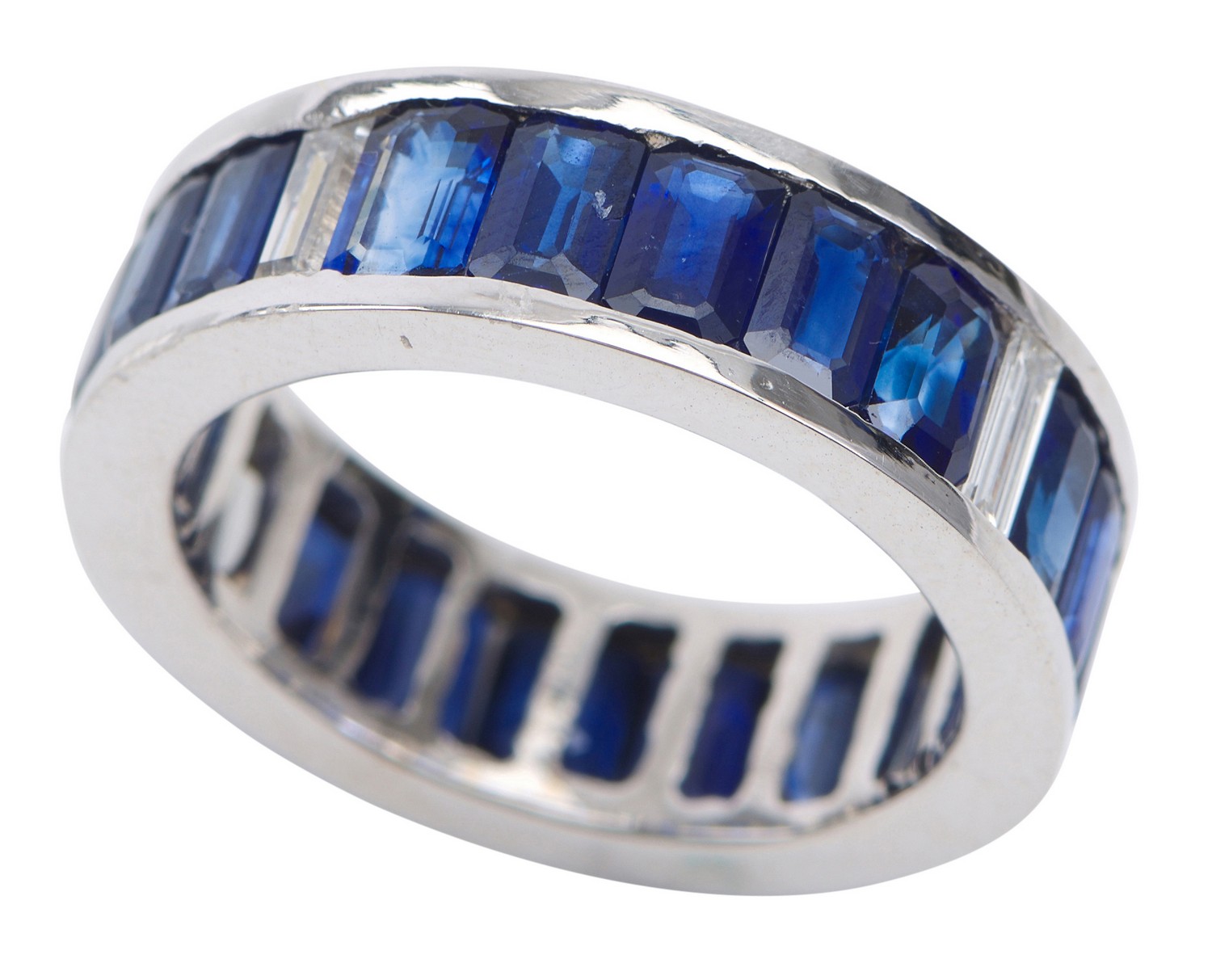 A SAPPHIRE AND DIAMOND CLUSTER RING