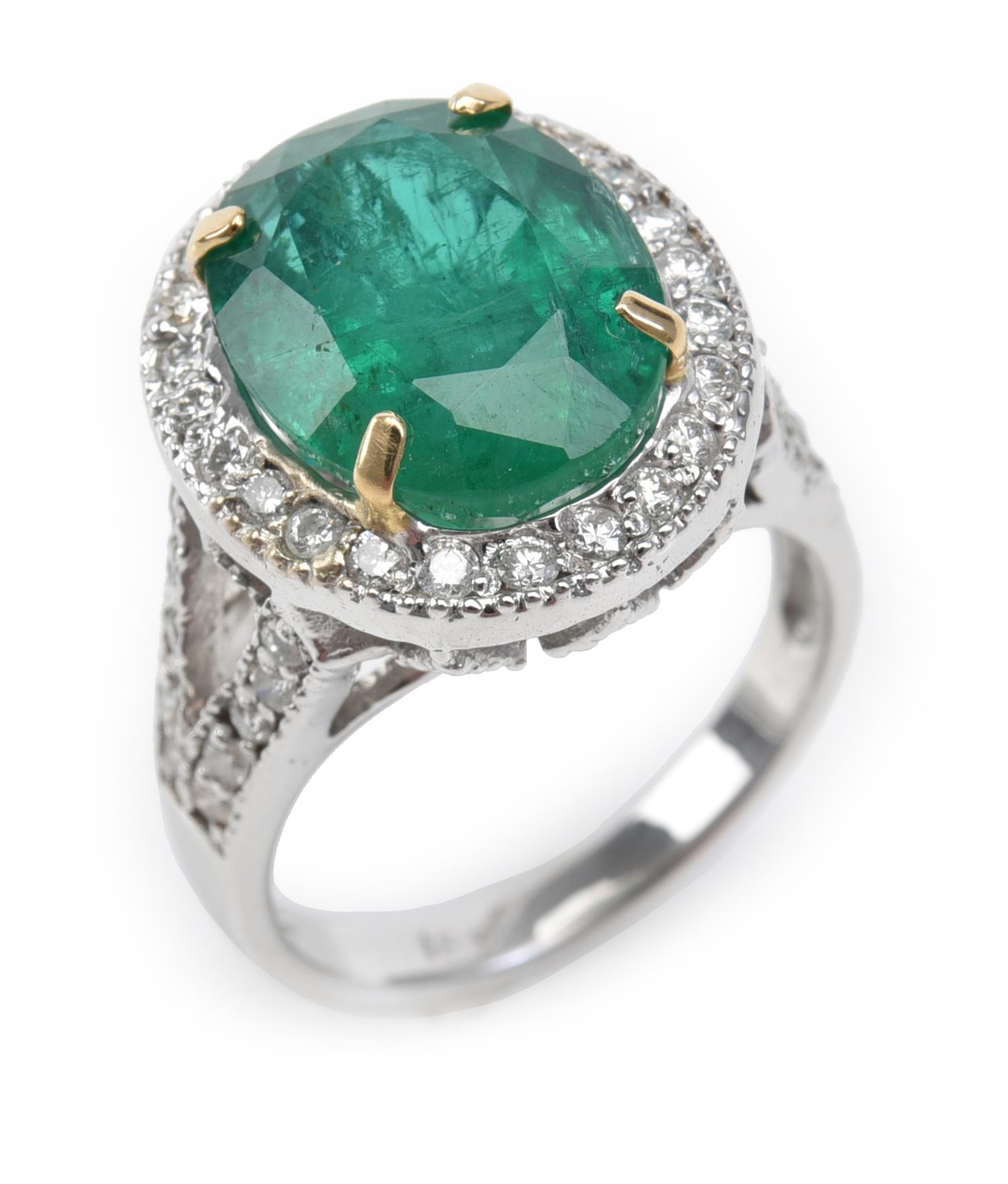 A SAPPHIRE AND DIAMOND CLUSTER RING