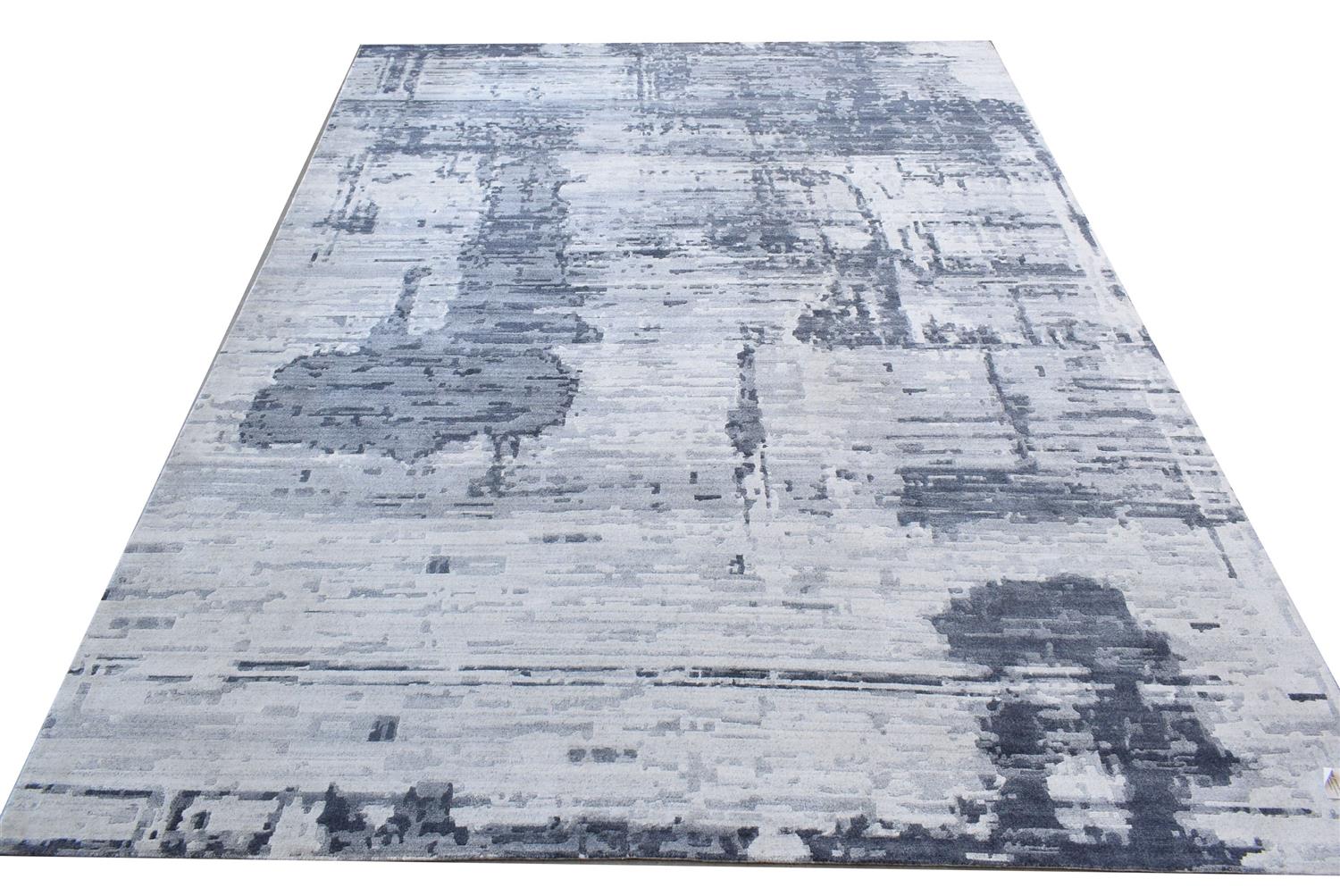 A BRAND NEW MODERN NEPALI HAND KNOT CARPET, SOLID AND DENSE WOOL PILE AND SILK TEXTURE IN PRISTINE CONDITION, MODERN ALL OVER ABSTRACT DESIGN IN TONES OF CHARCOAL, CREAM AND GREY, SIZE 399 X 303 CM, ORIGIN INDIA, RRP $7,900