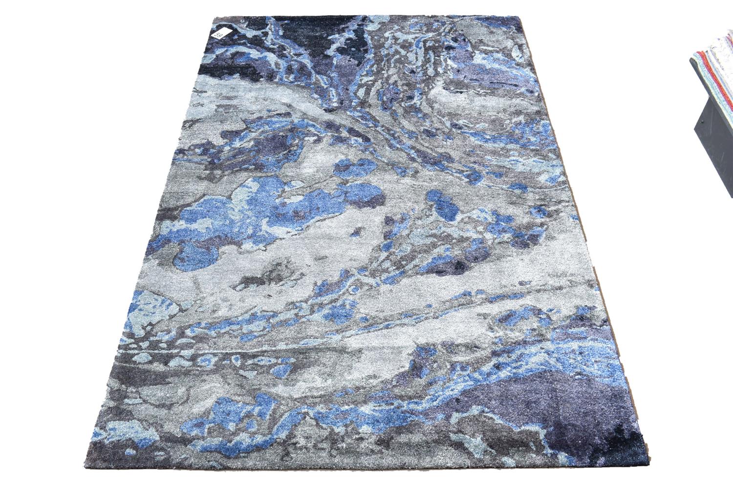 A BRAND NEW MODERN HAND TUFTED CARPET, SOLID AND DENSE WOOL PILE AND ART SILK, MODERN GALAXY DESIGN IN TONES OF CHARCOAL, BROWN, CREAM AND BLUE, SIZE 275 X 185 CM, ORIGIN INDIA, RRP $1,900